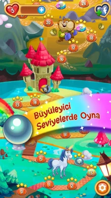 Korsan gemiler ve mağara opera salonları gibi parlak dünyalarla dolu, gelişen ve görkemli bir masal haritasına dalın. Seviyelerde ilerlerken arkadaşlarınıza karşı mücadele edin ve onlara ışıl ışıl hediyeler gönderin! Gizli Peggle gnome’lar, cevherler, zaman ayarlı bombalar, harika takviyeler ve mükemmel gökkuşakları sayesinde aksiyon asla bitmiyor.