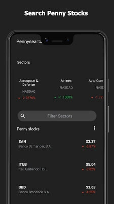 FEATURES: -Search Criteria: Traders can filter penny stocks by price, sector, top gainers, top losers & risk tolerance
