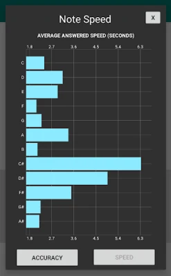 You will be able see stats on your performance including how accurate you are at identifying each note, and how long it takes you to identify each note.