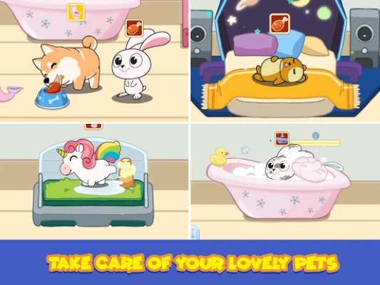 Are you thinking about how to make your virtual pet happy and satisfied? Do you like to take care of pets? This dream house is just what you need to write your own pet house story! If you are a true pet lover, but do not have a real pet, you may enjoy playing pet puppy games and pet cat games! Plus, if you are a fan of decoration games, you will definitely love our new pet house little friends game. Imagine you will have a lot of little friends to take care.