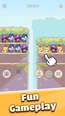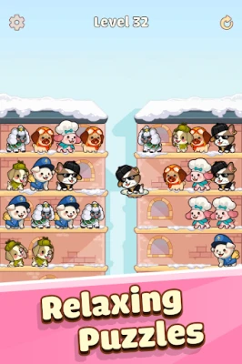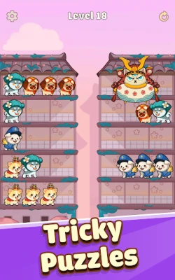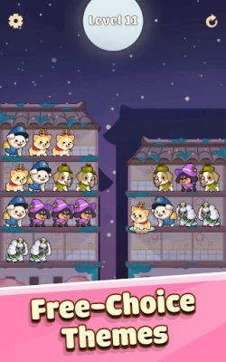 Pet Sort Puzzle is an fascinating combination of puzzle and sorting game. Try to gather a pack of the same dogs on each shelf until all of them are picked up by the UFC (Unidentified flying cat). Customize your own world with themes, weathers and puppy types.