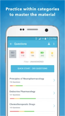 Install the free version today and jump start your studying! We have provided a limited free version of the app that you can try before deciding to upgrade. This version includes a limited amount of clinical vignettes and basic progress metrics.