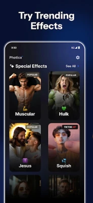 Cool animate live photo with pix effects are now available to you in Photica! Try them on various objects - all you need to do is upload a photo from your gallery with person, then apply one of the effects. Watch as the person in the photo revive into the most popular superheroes, and objects explode, melt, squish, crush, turn into cakes, inflate or flatten, creating a completely new visual experience! With Photica awesome features, you can try on looks with massive muscles and long hair, join a fight club, or receive a blessing and hugs from Jesus.