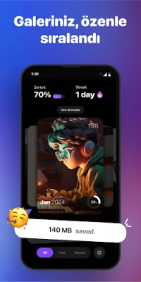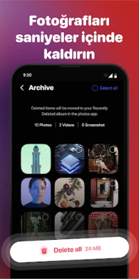 - Tek Dokunuşla Temizleme: İstenmeyen ekran görüntülerini, bulanık fotoğrafları veya eski memleri silerek yer açın ve resimlerinizi düzenleyin.