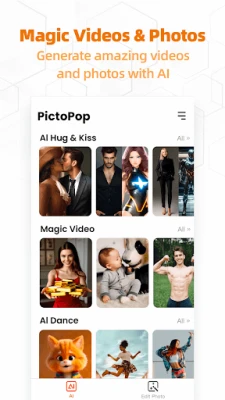 ——Photo to Video: Turn static images into lively video stories! You can create personalized experiences with our intuitive templates: AI kiss and hug videos, transformation videos, dance videos, emotions...