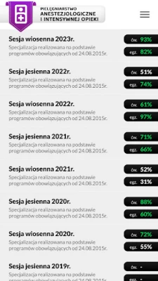 Nasza aplikacja zawiera wszystkie testy zaczynając od sesji wiosennej 2018r. (Specjalizacja realizowana na podstawie programów obowiązujących od 24.08.2015r.)