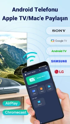 • AirPlay Desteği: AirPlay 2 desteğiyle AirPlay ekran yansıtma özelliğini kullanarak Android ekranınızı Apple TV veya Mac'e yansıtın, çok odalı ses ve düşük gecikmeli performans sağlayın.