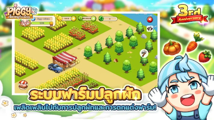 • ระบบการเลี้ยงหมู : Piggy มีหมูให้เลือกเลี้ยงในฟาร์มมากมาย ไม่ว่าจะเป็นการซื้อหมูจากร้านค้ามาเลี้ยงให้โตเต็มไว้ และ นำไปผสมพันธุ์ เพื่อให้ได้ ออกมาเป็นลูกหมู พันธุ์ต่างๆ (มีพันธุ์พิเศษบินได้ด้วยนะ)