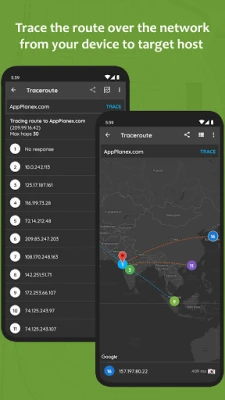 ✔ Track the path taken by packet over the IP network from your device to target host with and Display hops on Map with Traceroute.