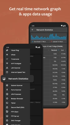 ✔ Get real time network data usage graph & data used by each app.