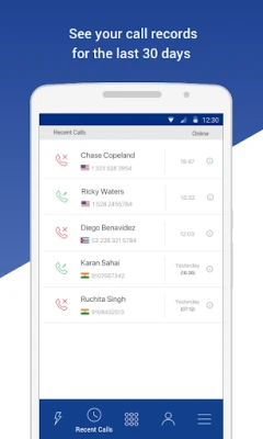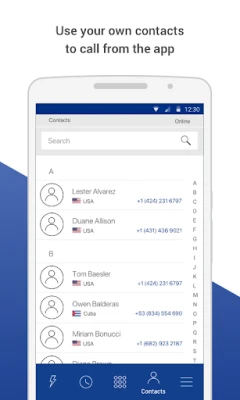 This feature will help you call any contact number without an Internet connection. For any international contacts you may need to call, a local phone number will be instantly made available for you.