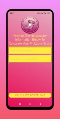 This is a pinkish colour styled love calculator App. It is free to use and made specially for pink colour lovers. Launch the App and calculate the Love percentage between you and your partner in a pinkish themed App.