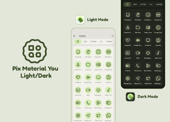 Pix Material You Açık/Koyu Temalı Simgeler - Bunlar, duvar kağıdından / sistem vurgusundan rengi değiştiren, ayrıca açık / karanlık modunda rengini değiştiren özel başlatıcılara yönelik simgelerdir. cihazın. Ayrıca stok başlatıcıya başvurmanın yolları da vardır (bunun hakkında aşağıda ↓ ↓ ↓'yi okuyun).