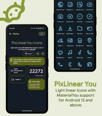 Transform your Android with our new PixLinear You Icons pack, designed specifically for Android 12 and above with Material You support!