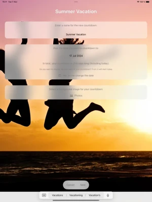 Just start by setting the date and name of your countdown (e.g. your birthday or your next vacation) and add a photo to each day. That's it! Share this countdown with your friends and family and they can enjoy the waiting time and get a surprise every day.
