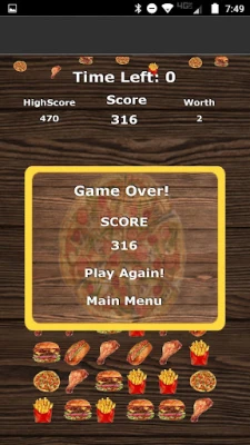 Pizza Burger Match 3 Game is a frenzied fast food fight full of non-stop fun. Pizza, burgers, chicken, hot dogs, and fries bounce off your screen to your skillful touch. Match the food item in pairs or more. You have 90 seconds to ramp up the score.