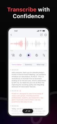 Plaud combines AI technology to achieve efficient and accurate text transcription services in multiple languages, combined with the latest features of AI, which greatly enhances the process of converting natural speech to text, thereby increasing daily work efficiency.
