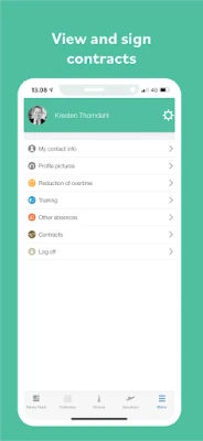 Some more features are: - Shift calendar - Absence registration with vacation and sickness - Contract overview and contract signing - Overtime registration and application - Check-in and out of the institution - Access and edit your information