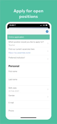 On the front page you can view open positions and apply directly for them with your information, CV and cover letter. The pme @Work app gives you the entrance to work at pme Familienservice, with communication and employment contracts directly in the app.