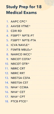 Unlock thousands of Medical certification exam practice questions and mock exams for the PTCB PTCE, CDR RD, NHA CPT, AAPC CPC, AAVSB VTNE, and more with Pocket Prep, the largest provider of mobile test prep for professional certifications.