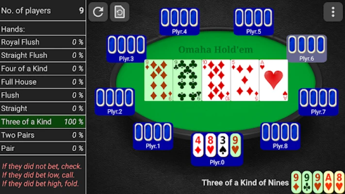 In the Premium version you can switch to other games, such as Omaha Hold'em and 5-card Draw, and the ads are removed. The game starts when you set the number of players.