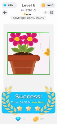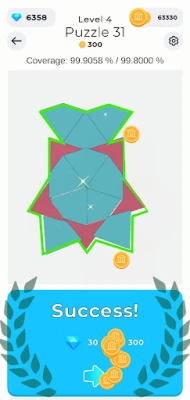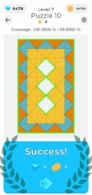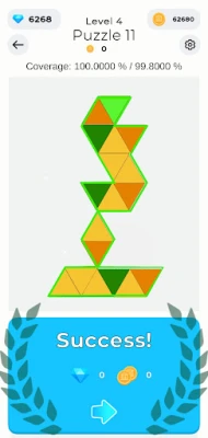 The core gameplay revolves around solving puzzles using simple geometric shapes like squares and triangles. These shapes can be placed on the board, and parts of them can be unfolded (flipped) to fit into the puzzle frame to solve the puzzle. It’s a clever blend of spatial reasoning and creativity that keeps players engaged and thinking outside the box.
