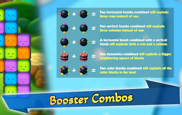 • Tap 7 or more connected same jellies blocks to get a rainbow boom.