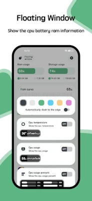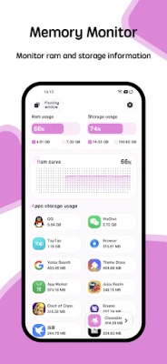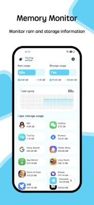The most beautiful and powerful monitor for android! Include storage and ram monitor. You are able to monitor storage and ram usage at the same time. It provides many kinds of tools. including: ram widget, cpu widget, battery widget, desktop floating window, status bar floating window. You can monitor the ram, cpu and battery information very convenient. The detail features including: