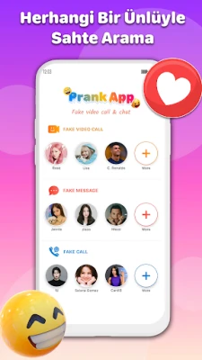 Prank Call - Fake Video Call, arkadaşlarınıza veya aile üyelerinize şaka yapmak ve eğlenceli bir durum yaratmak için komik bir sahte arama veya sahte aramadır. Bir idolle sahte bir telefon görüşmesi, sahte görüntülü arama Noel Baba, hayalet şaka araması yapın. Sıkıcı günlerde sahte görüntülü aramalar ve canlı sohbetler yaparken en iyi şaka deneyimini yaşayın. Sahte görüntülü aramalar tam da aradığınız şey!