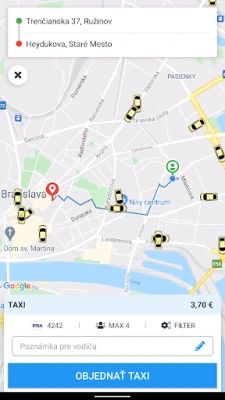 Nainštalujte si našu aplikáciu a objednajte si taxík jednoducho a rýchlo. Stačí zadať adresu, kde vás máme vyzdvihnúť a kam vás máme odviezť. Aplikácia vám ukáže cenu a čas príchodu taxíka.
