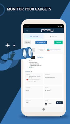 ▸ Our free plan is just a small test of what Prey can help you achieve. To access industry-leading device location and more, please consider our payed plans.