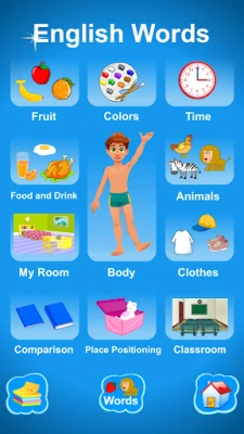 More than 100 words a child learns through the program Educational and recreational games. Spelling of words. The program includes all the topics surrounding environment of the child Animals - color - fruit - time - food and drink - my room - Clothing - the human body - the classroom - ... Suitable for children in the nursery and the preliminary stage. Suitable for private schools and kindergartens.