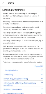 This app provides preparation materials for PTE, IELTS and TOEFL all in one place. This is the best app if you want to compare these test to decide which test to book. You will also find test format, sample questions and tips on how to attempt the test.