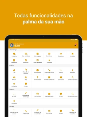 ◉ Agendamentos de Áreas Comuns e Mudanças ◉ Mural de Recados ◉ Ocorrências ◉ Aviso de Correspondências ◉ Documentos e Contratos ◉ Enquete para os Condôminos