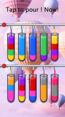 Move the glass to pour water, turn the four colors into one, and you can pass! The same color on the top can be poured!
