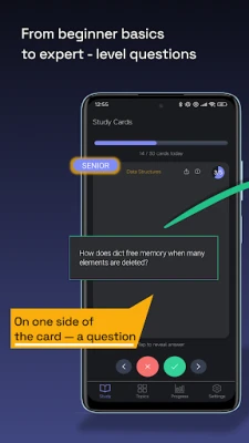 Flashbytes uses spaced repetition — the same scientifically proven method used to train pilots, doctors, and engineers. Each card gives you a complete unit of knowledge: the core idea, a code example, a simple analogy, and a common pitfall. No long lectures, no wasted time.