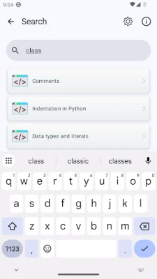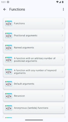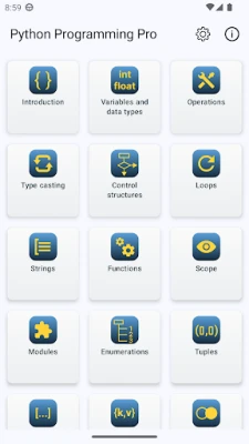 The Python Programming app contains an interactive test system for each section - about 180 questions that can be used to prepare for various interviews and exams.