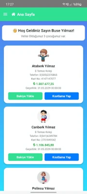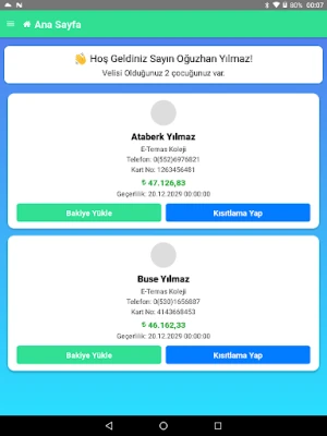• Öğrenciye bakiye yükleyip günlük işlemleri görüntüleyebilir, • Günlük, haftalık ve aylık harcamalarını kontrol edip, kısıtlayabilir.