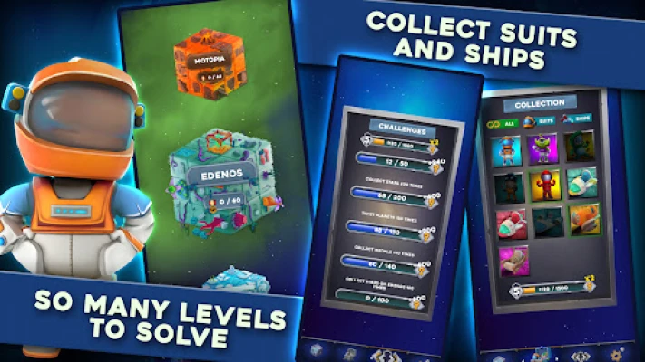 Play as a brave astronaut and journey through 100+ cube puzzles set on stunning planets. Twist and turn the cubes to solve each gravity-defying puzzle, collecting stars to unlock new planets in the galaxy. Each level is designed to challenge you with interstellar strategy, where quick thinking and clever moves are key to success.