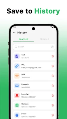 QR kod okuyucumuz ve barkod tarayıcımız, taranan ve oluşturulan tüm QR kodlarınızın geçmişini tutar ve bunları daha sonra kolayca alıp kullanmanızı sağlar.