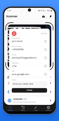 Effortlessly scan and create QR codes with our versatile QR Code Scanner & Creator app! Whether you're looking to quickly access links, save contact information, send messages, or share your own QR codes, this app makes it simple. With an intuitive interface, you can: