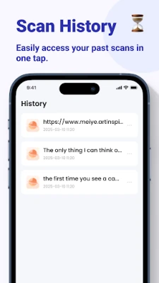 Key Features: - Pro Scanning 🔍: Instantly scan URLs, Wi-Fi, or text with smart detection. - QR Creator ✏️: Build QR codes for links, Wi-Fi, or texts like a pro. - Scan History ⏳: Easily access your past scans in one tap. - Ad-Free Speed ⚡: Lightweight, lightning-fast, and no distractions.