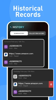 History: All scanned codes are automatically saved to your history. You can view, manage, or delete them at any time, making it convenient for quick review and use.