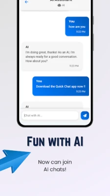 Quick Chat offers a safe and private space for users to chat without revealing their identity. Whether you're looking to discuss topics with friends or meet new people or talk to your AI assistant, Quick Chat makes it easy to join group chats and participate without the pressure of sharing personal details. You can also chat with an AI assistant.