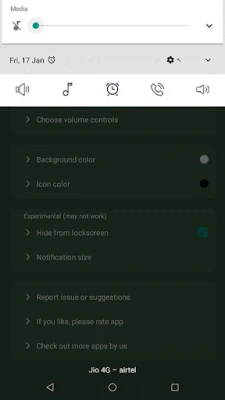 It provides maximum customisation options with clean simple UI. app allows notification toggles for volume sliders: Ring, Notification, Alarm, Music, In call and system(dial tone).