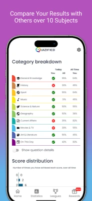 Join thousands of players worldwide playing and explore 10 new questions across 10 fascinating categories each day. Challenge your brain, compete with friends, and enjoy a mix of fun and thought-provoking questions. Whether you're a trivia novice or a seasoned quiz master, Quizified has something for everyone. With Quizified, learning is never boring!