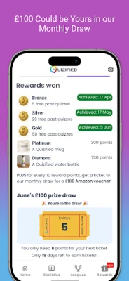 Rewards: Earn points by playing, sharing, and competing in leagues - then trade them for real rewards like bonus quizzes, mugs, and water bottles. You’ll even get entries into our £100 monthly prize draw.