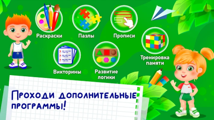 🧑🎓Приложение предназначено для всестороннего обучения детей. С его помощью Ваш ребенок узнает буквы и цифры, научится читать, писать и считать, рисовать и делать многие другие творческие работы, узнает окружающий мир и разовьёт словарный запас. Это не только отличная подготовка к школе, но и полноценное развитие детей от 2 до 7 лет, включая дополнительные направления, такие как: тренировка внимания и памяти, развитие логики, прописи.