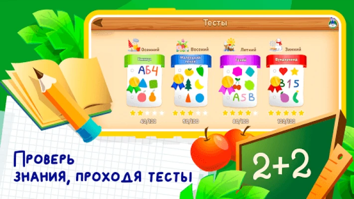⭐Награды для мотивации и поощрения успехов — в приложении есть награды-звездочки и билетики, которые можно потратить на обстановку своей виртуальной комнаты, завести питомцев и многое другое. А также дипломы после выполнения тестов.