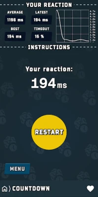 Discover how fast your reaction is with this simple reflex game. Measure and track your reaction time. Perfect for estimating and tracking your motor response and brain speed.